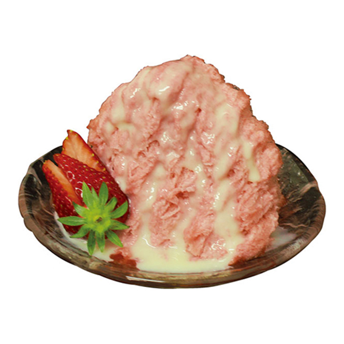いちご果汁を50%も使用した、いちごの甘さと爽やかな酸味が特長の台湾風かき氷用いちごフレーバー氷。いちご果肉をのせると、極上スイーツの完成です