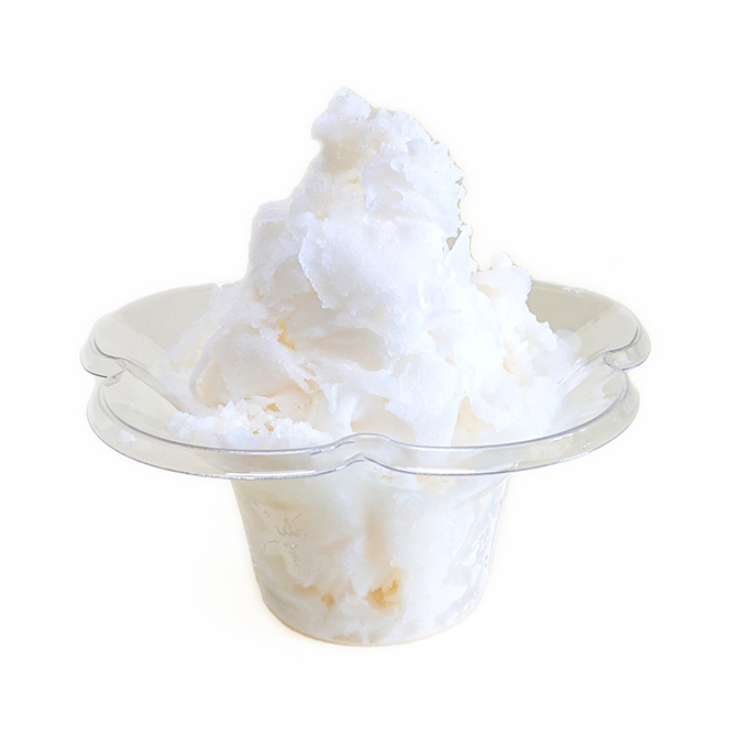 濃厚でおいしい牛乳として知られている、鳥取県大山の「白バラ牛乳(大山乳業農業協同組合)」を使ったミルク氷は、そのままでももちろん、多彩なトッピングメニューのベースかき氷としてもご利用いただけるミルクフレーバーです