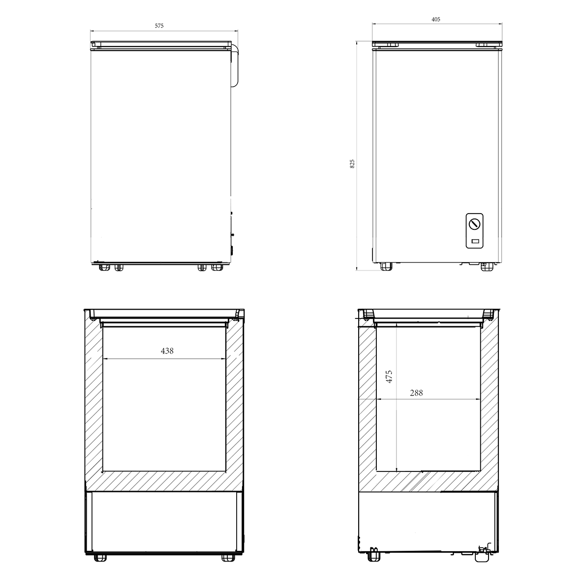 収納しやすい庫内フラット設計の上開きタイプフリーザーで、プリコートアルミニウム仕様の庫内、金属製ヒンジで丈夫な設計。ドレン、キャスター付