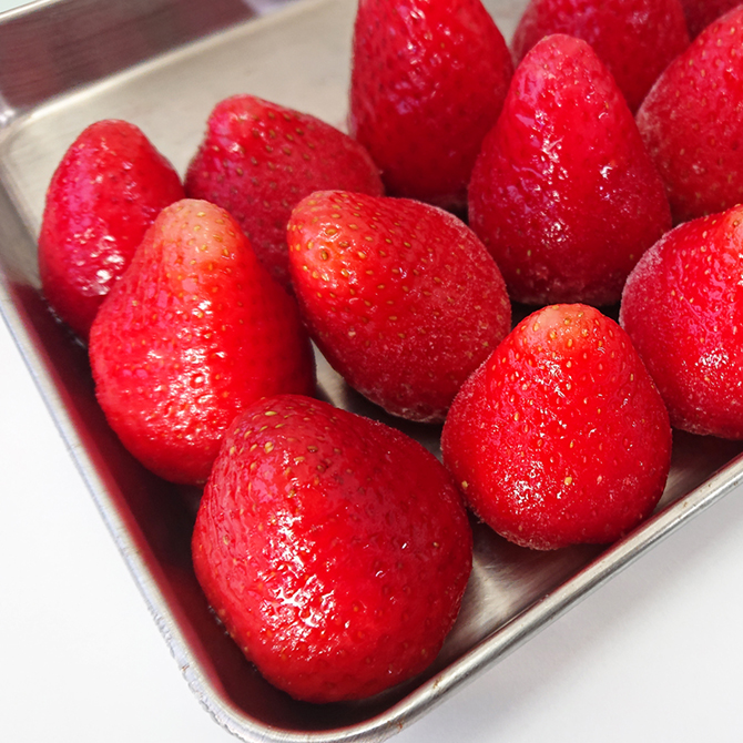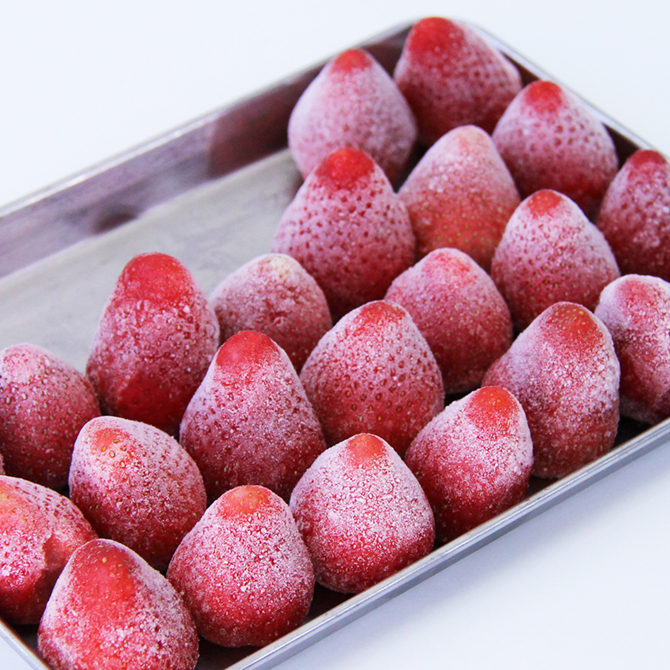 摘みたての新鮮ないちごを急速に凍結。「旬のおいしさ」をかき氷にのせてみては・・・