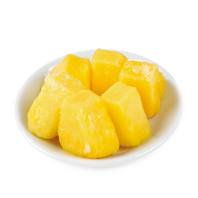 南米コスタリカ産またはペルー産のゴールデンパイナップルを使用。芯も皮もないのでお手軽にお使いいただけます。甘みと酸味のバランスの良いパイナップルです