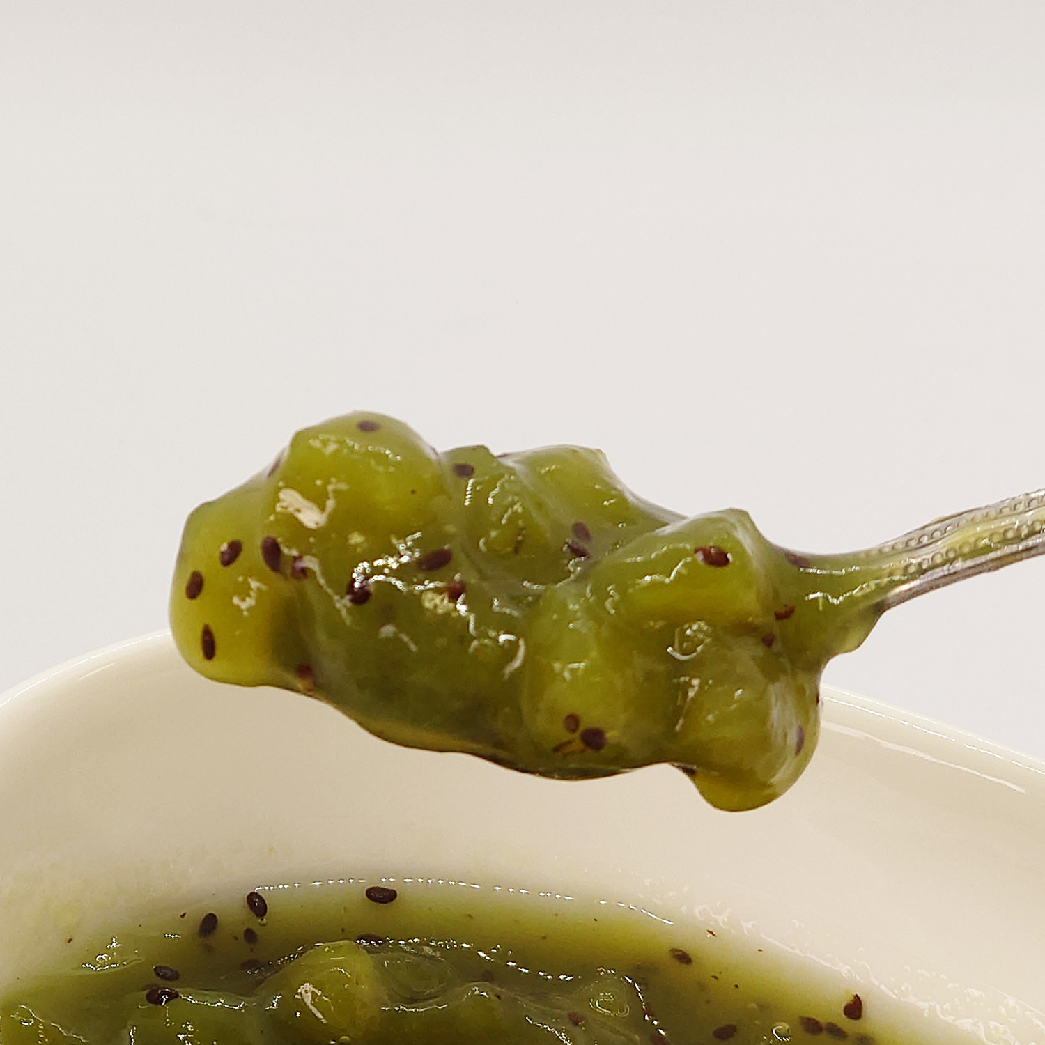 2.「キウイシロップ」の中からティースプーン1杯程度の「キウイ果肉」を別皿に取り分けておく