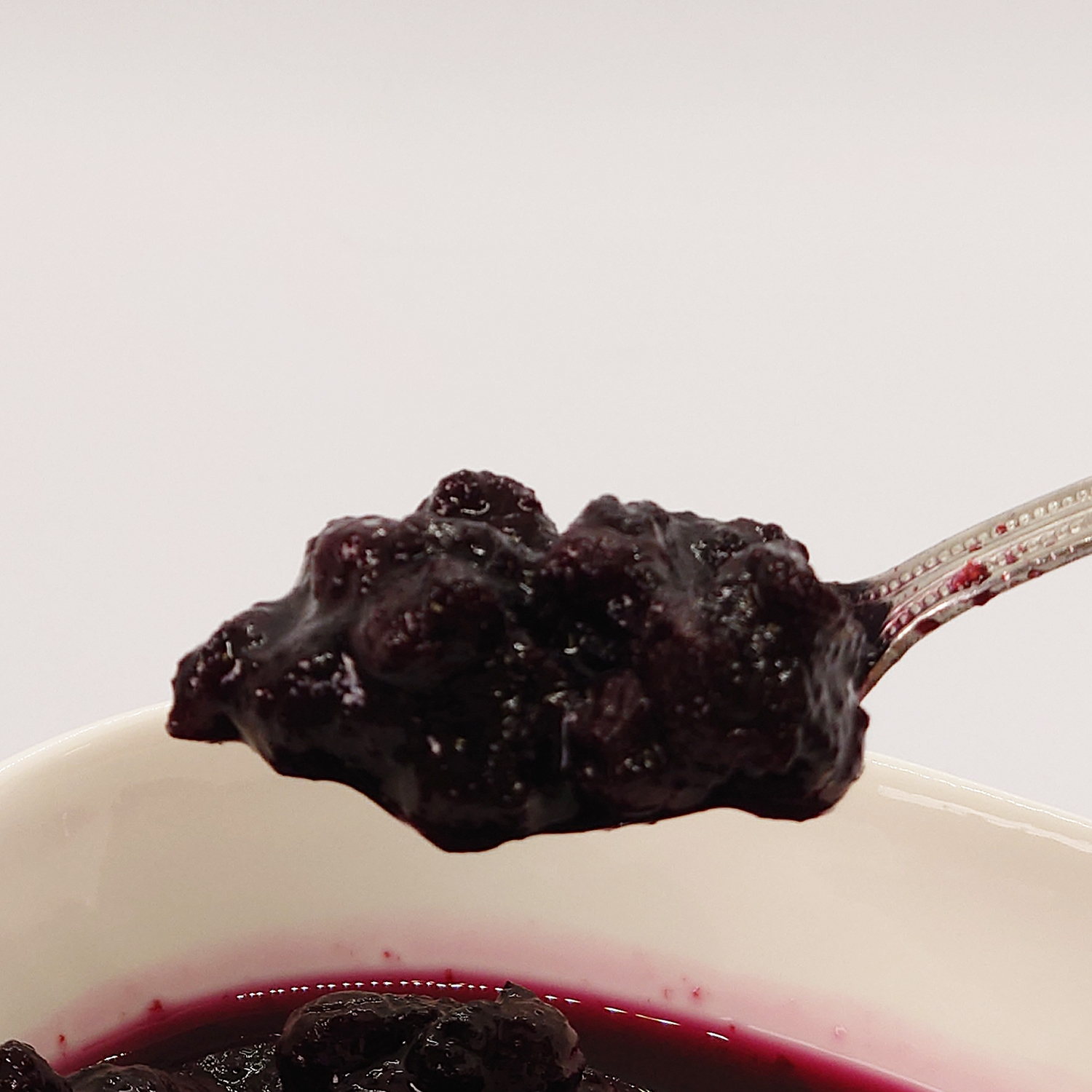果肉がごろっと入ったブルーベリーフルーツソース。低糖度でフルーツ本来の風味を味わえる果肉入りの冷凍フルーツソースです