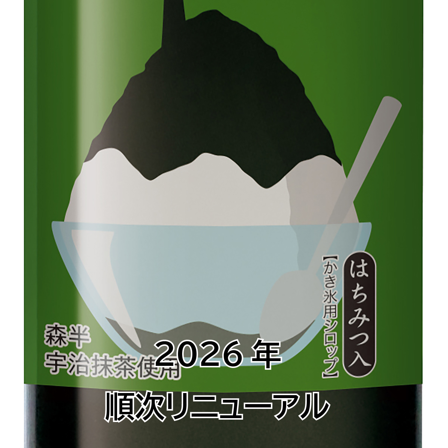 森半宇治抹茶と蜂蜜を使用したかき氷シロップ。宇治抹茶の風味豊かなかき氷がお楽しみいただけます